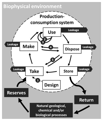 Industrial materials are transformed in the production-consumption systems and ideally would be made in a way that at the end of their life they can be reintegrated into the biophysical environment without causing environmental harm.